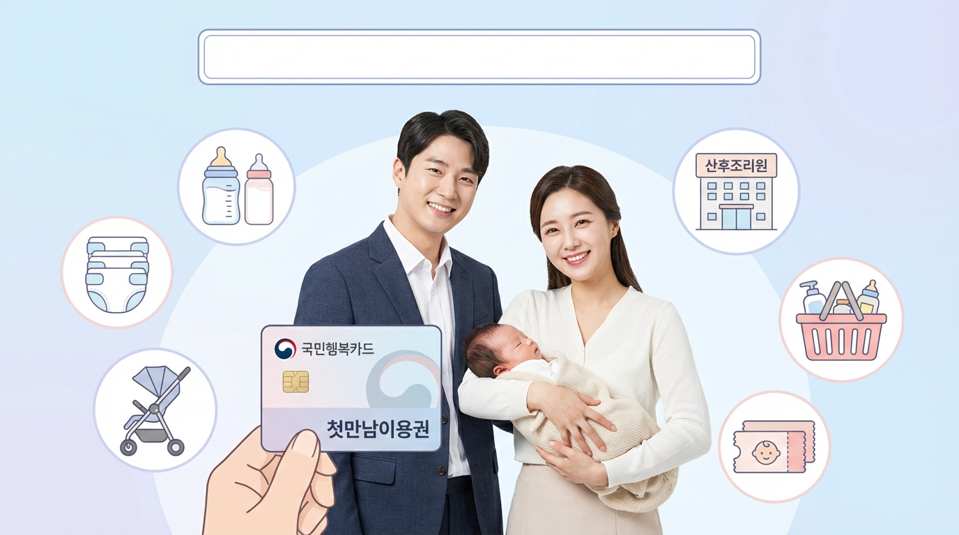 국민행복카드 카드사별 혜택 비교하기 →첫만남 이용권은 출생 후 1년 내에 사용해야 하는 바우처입니다. 첫째 200만 원, 둘째 이상 300만 원이 지급되며, 산후조리원 결제에 가장 먼저 활용하는 것이 가계 경제에 가장 유리합니다.
