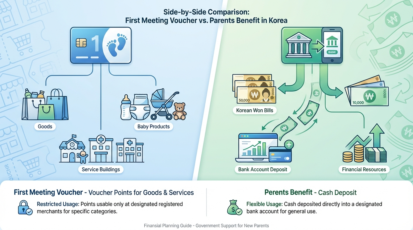 | 지급 형태 | 바우처(포인트) | 현금 입금 |