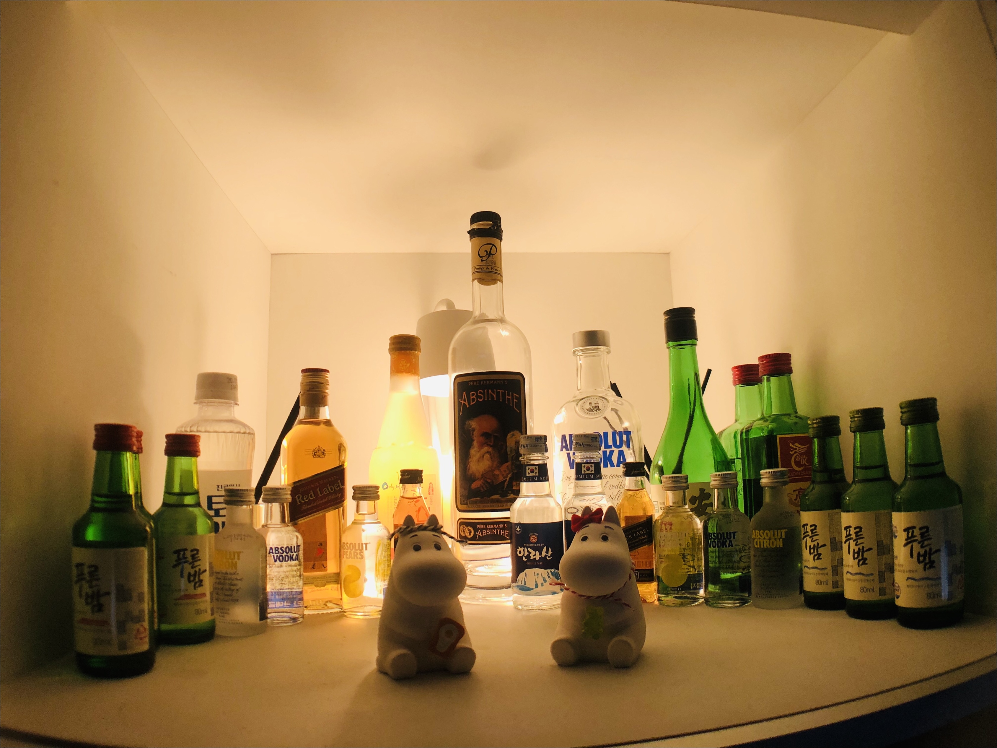 수납하기 애매한 공간을 이용한 주류 쇼케이스. 술자리를 좋아하는 저는 평소 사용하지 않던 양키캔들 램프를 이용해 주류 쇼케이스로 감성적인 분위기를 더했습니다. 블루투스 음악을 켜고 스크린에 감성적인 영상을 켜놓으면 마치 bar에 온 듯한 기분이 들곤 합니다.