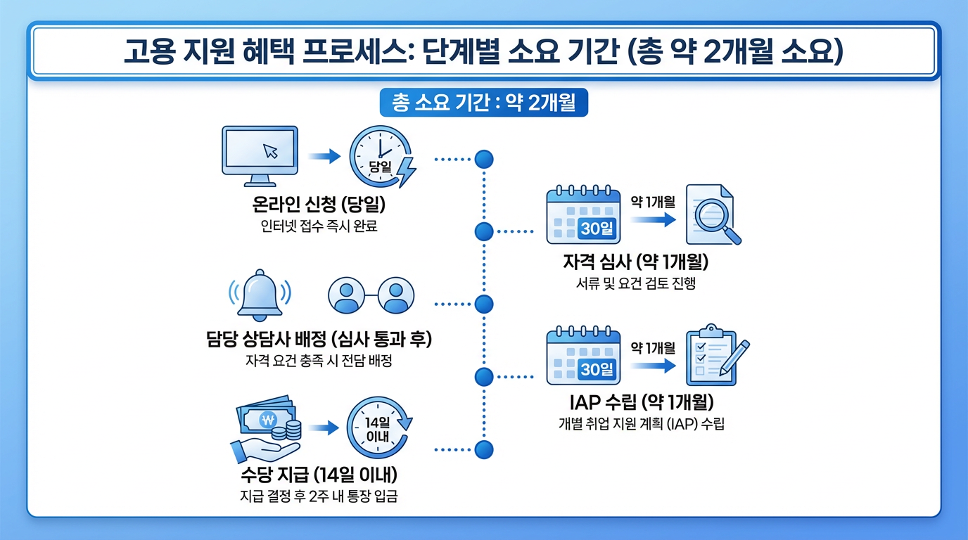 2단계: 자격 심사 약 1개월 소득·재산·취업경험 요건 확인 (서류 보완 시 더 소요)
