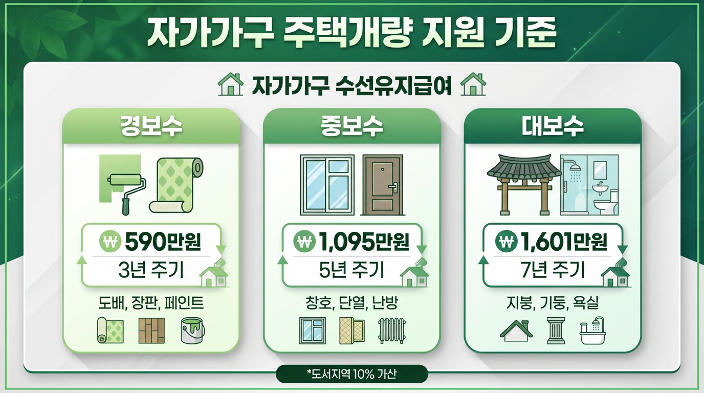 - 자가 가구: 집 수리비용(수선유지급여) 지원