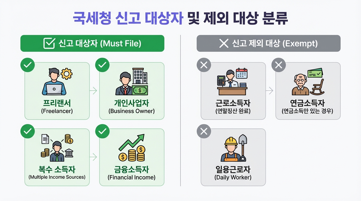 - 사업소득이 있는 경우: 프리랜서, 개인사업자 등 연 300만 원 초과 시 필수