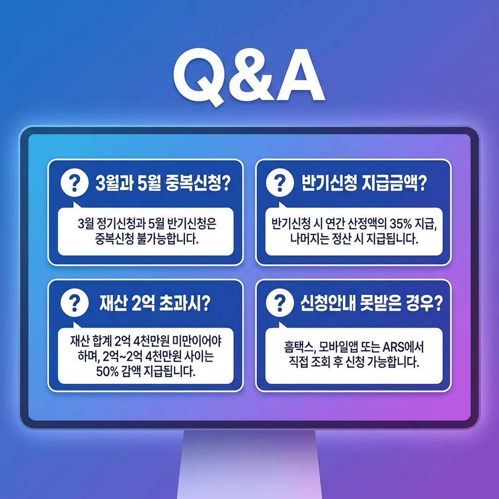 본인이 근로소득만 있고 빠른 지급을 원한다면 3월 반기신청이 유리하며, 사업소득이 있거나 소득 유형이 불확실하다면 5월 정기신청을 선택하는 것이 안전합니다.
