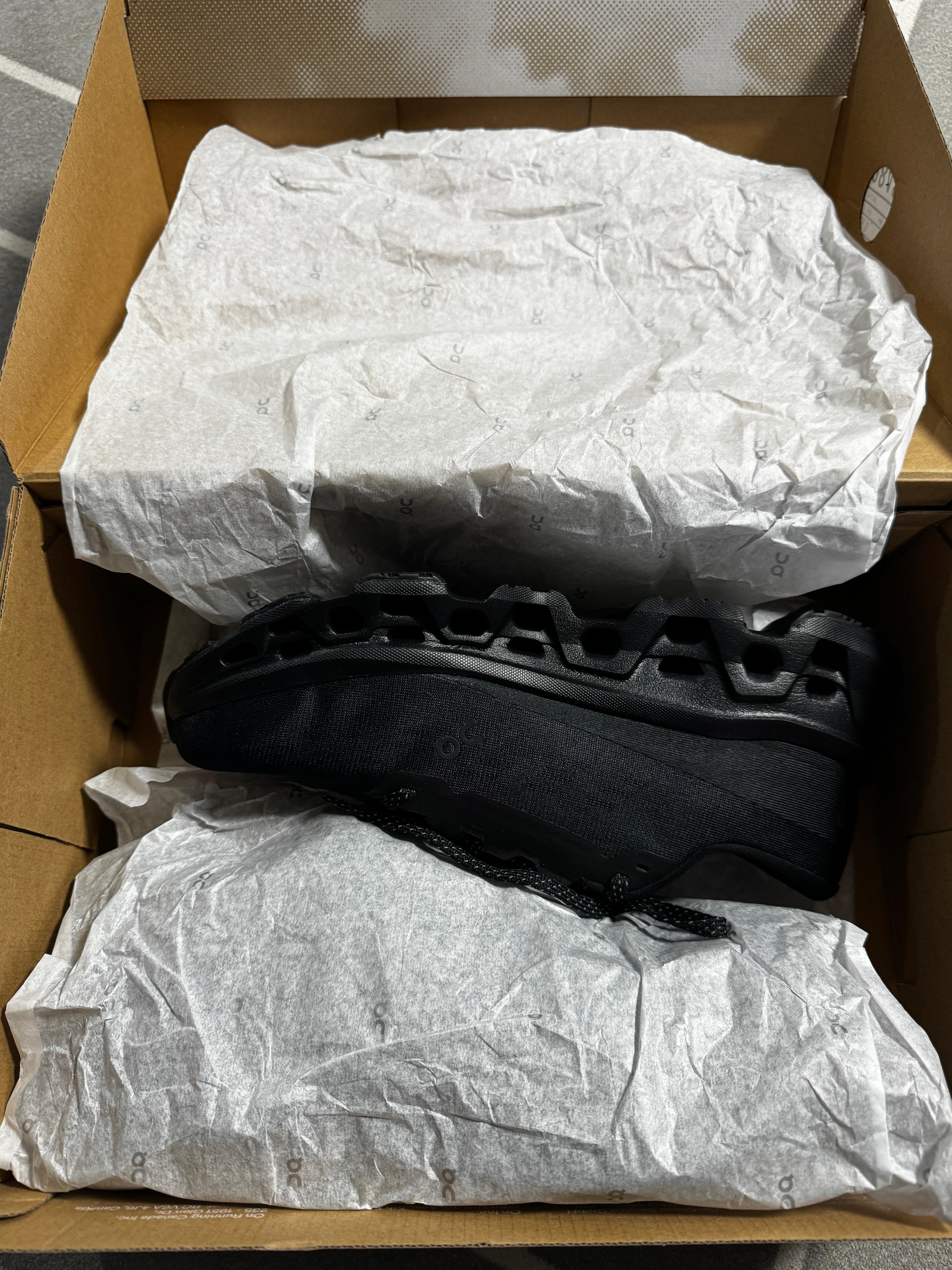 박스를 열었을 때 가장 먼저 든 생각은 "생각보다 덩치가 크다"였습니다. 온러닝 특유의 클라우드텍(CloudTec) 밑창이 마치 레고 블록처럼 도드라져 있어, 시각적으로도 압도적인 존재감을 뽐냅니다. 처음 접해보는 온러닝 제품이었는데요. 날렵함 보다는 묵직함 외관을 보여주는 제품이었습니다.