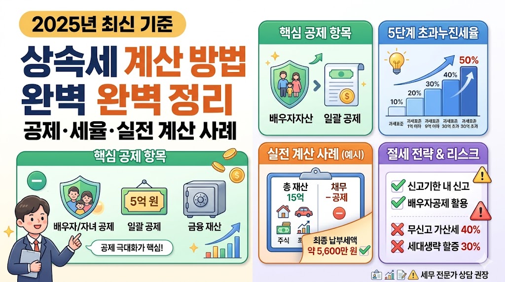 ※ 본 글은 일반적인 정보 제공을 목적으로 하며, 개별 세무 상담을 대체하지 않습니다. 정확한 상속세 계산과 신고는 세무사와의 상담을 통해 진행하시기 바랍니다.