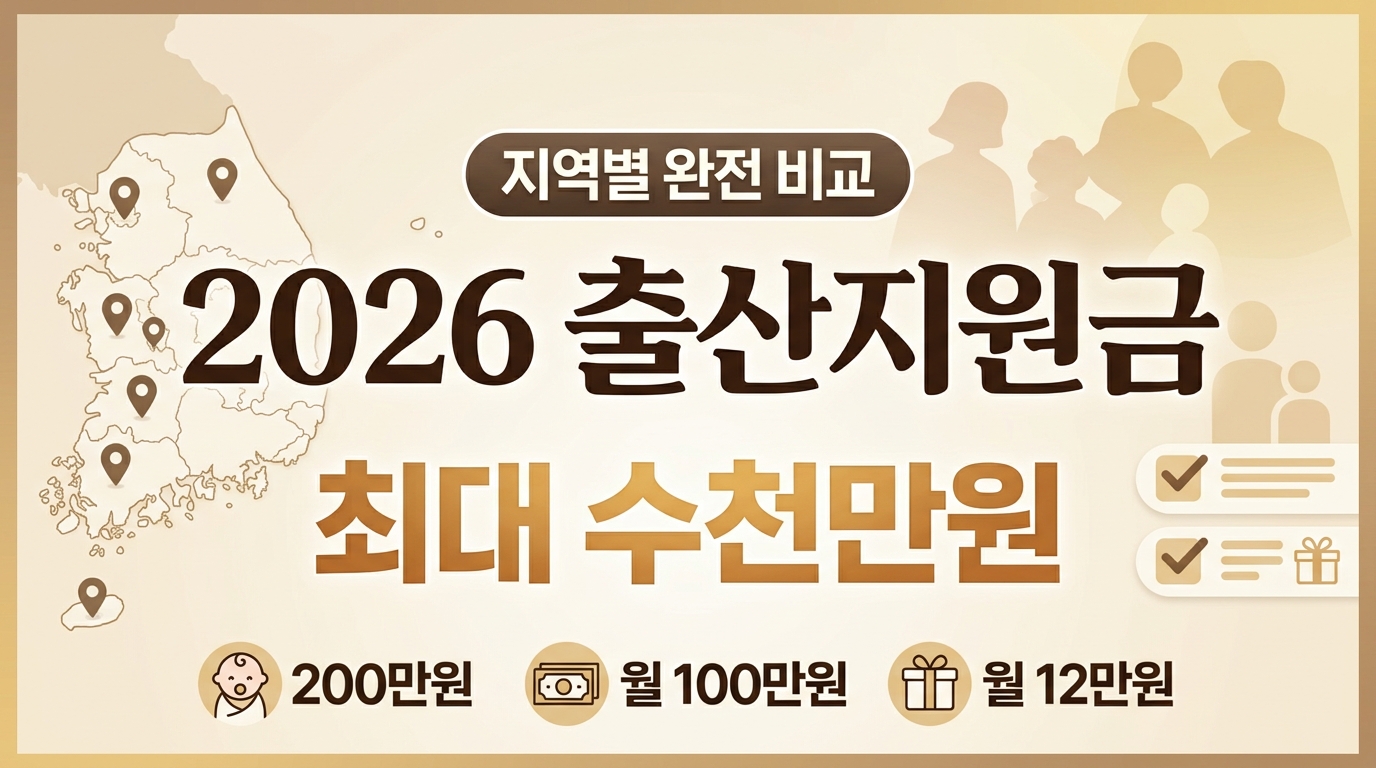 메타 설명: 2026년 지역별 출산지원금 총정리. 첫만남이용권·부모급여·아동수당 정부 공통 지원부터 지자체별 추가 지원 비교까지, 본인에게 유리한 혜택을 확인하고 신청 방법을 알아보세요.