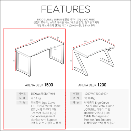 게이밍 책상이 곧 사무용 책상으로 제격이다. 라는 말씀을 드리고 싶습니다. 오랜 시간 컴퓨터로 일을 하는 직장인들에게 최적화된 책상이 아닌가 싶습니다. 넉넉한 공간, 튼튼함, 세련된 디자인 등 공간과 효율을 다 얻을 수 있는 책상이 이 제닉스 ARENA DESK 가 아닌가 싶습니다. 제닉스 책상 또는 사무용 책상을 찾고 계신다면 고민하지 마시고 이 제품 선택하시는 걸 추천드립니다.