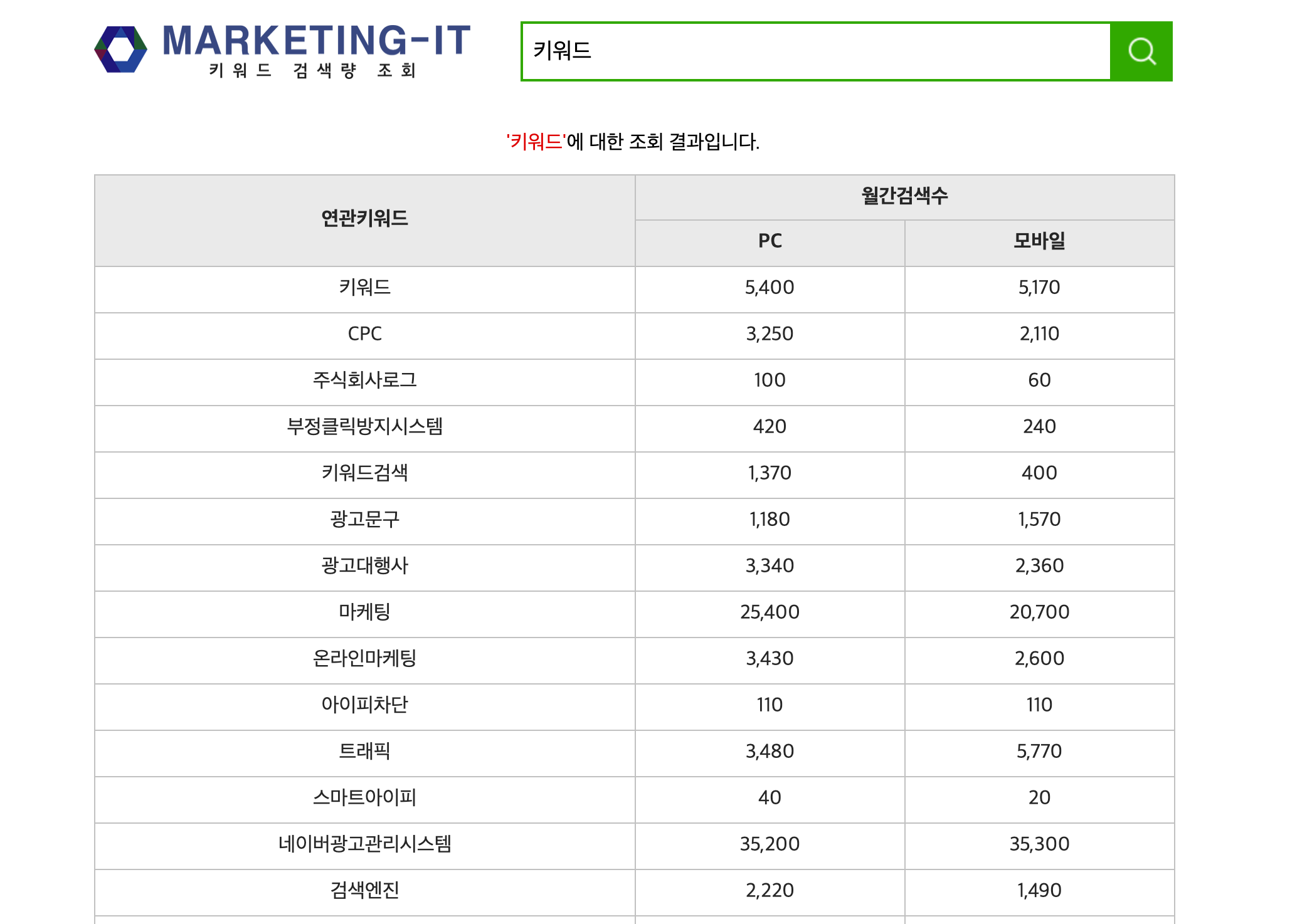 네이버 연관 키워드에 대한 PC / 모바일 월간 검색량 데이터를 확인할 수 있는 사이트 입니다. 자신 블로그의 상태에 따라 적절한 연관 키워드를 조합해서 포스팅을 한다면 상위노출 확률이 더 높아지겠죠?