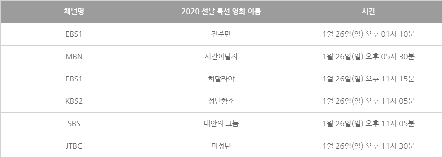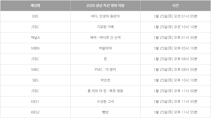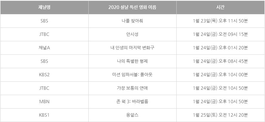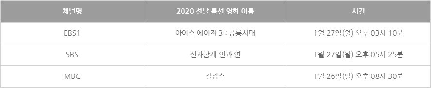 [정보] 2020년 설날 특선 영화 편성표 공유