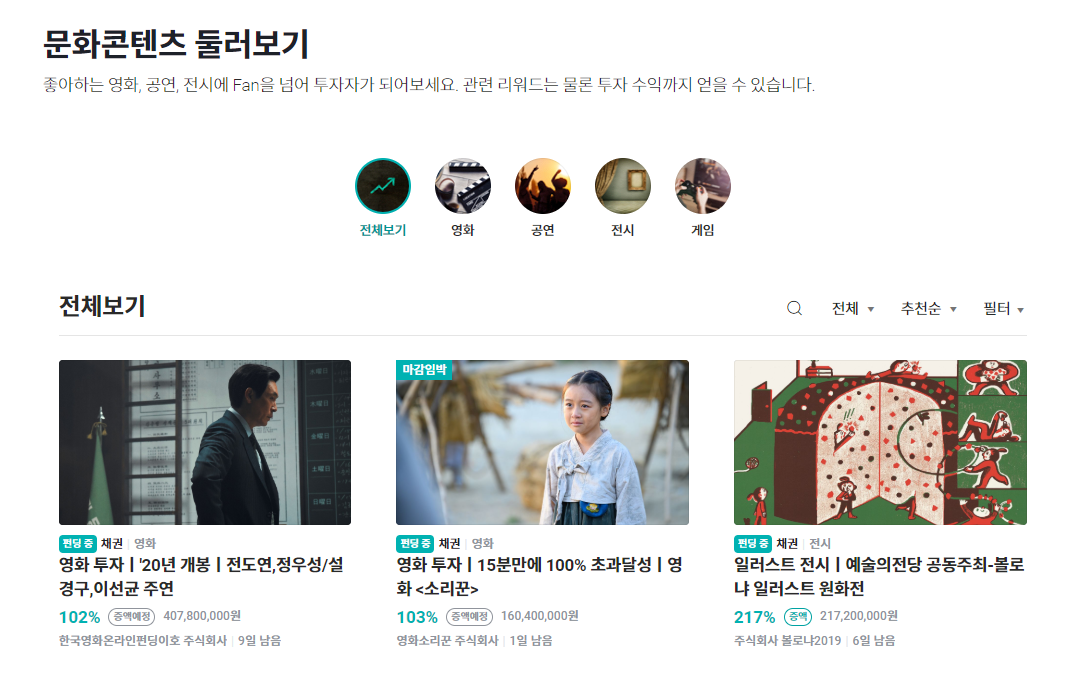 크라우드펀딩, 스타트업투자, 영화투자, 아이디어제품, 신제품런칭, 임팩트투자