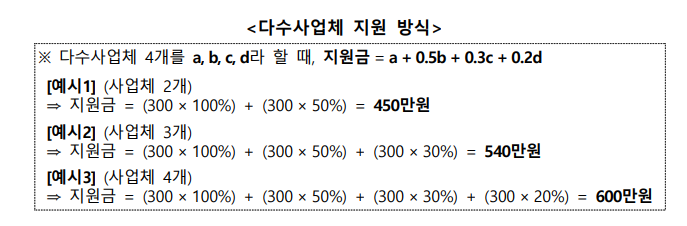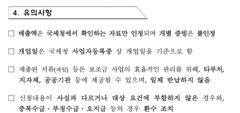 매출이 감소 되었거나, 감소가 예상되는 업체여야 하고 사업체당 300만원 정액 지급합니다. 대표자는 같더라도, 사업체가 상이할 경우에 사업체 별 지원이 됩니다. (4개, 600만원) / 코로나 19로 인해 영업시간 제한을 받은 업체여야 합니다.