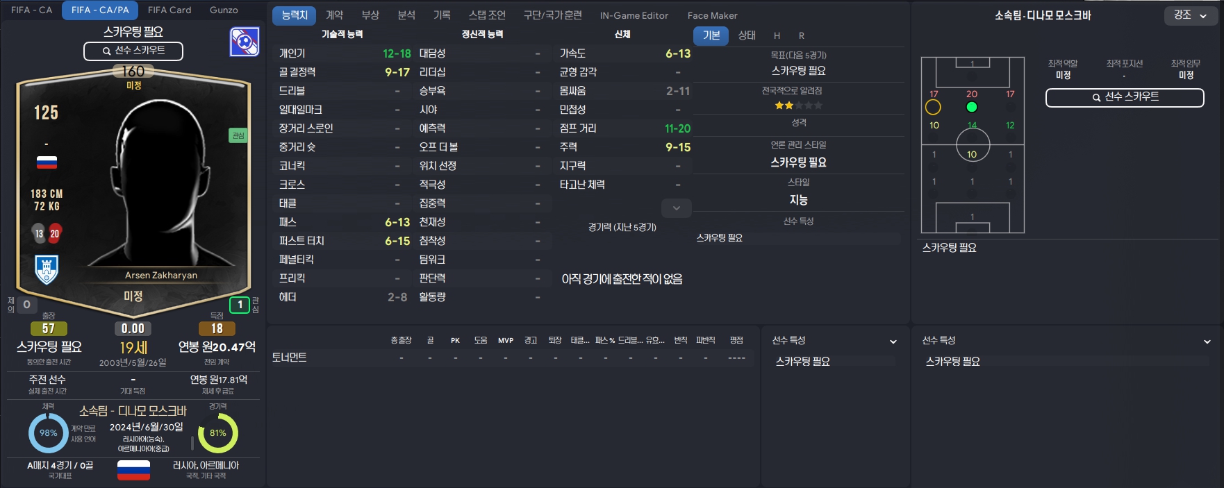 소속팀 : 디나모 모스크바