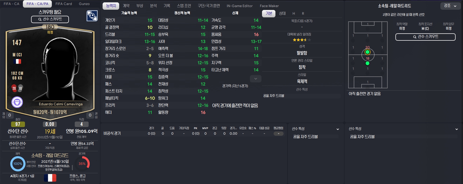 주력(20) / 골 결정력(17) / 드리블(18)