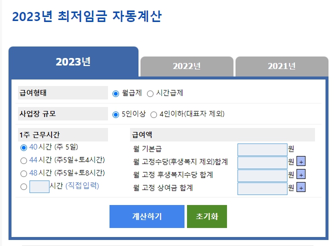 2023년 최저시급 계산기 안내