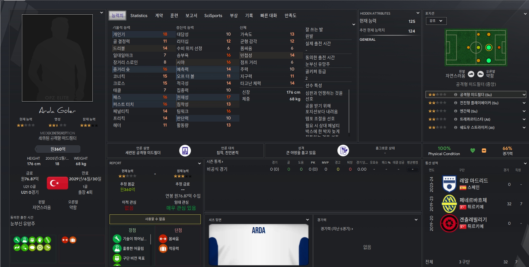 Arda Güler 선수는 현재 레알 마드리드 u-19에서 활약하고 있는 선수입니다. 개인기와 중거리슛 그리고 패스가 뛰어난 선수로 평가받고 있습니다. 주로 소화하는 포지션으로는 중앙 공격형 미드필더와 오른쪽 윙어를 소화하고 있으며 왼발을 주로 사용하는 선수로 알려져 있습니다.