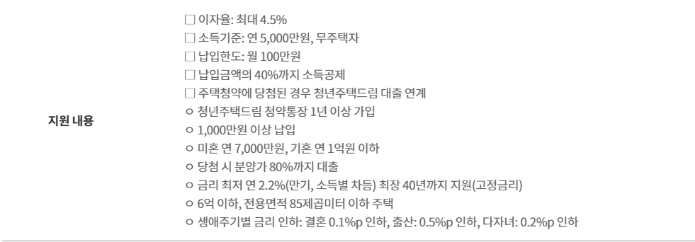 청년 주택드림 청약통장 혜택