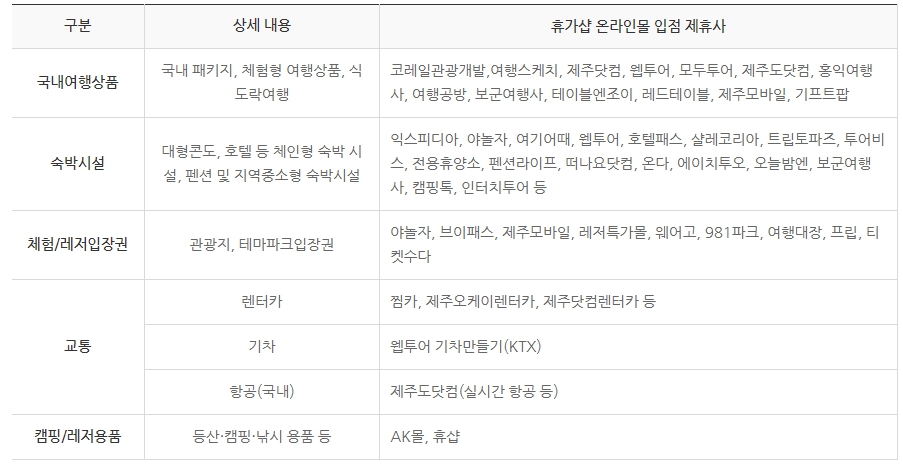 근로자 휴가비 지원사업으로 적립된 휴가비(40만원)은 '휴가샵' 온라인 몰에서 포인트로 지급되며 국내 여행 관련 상품을 구입해서 사용하는 방식입니다. 사용기간은 포인트 적립 부여 시점부터 12월20일(금)까지 입니다.
