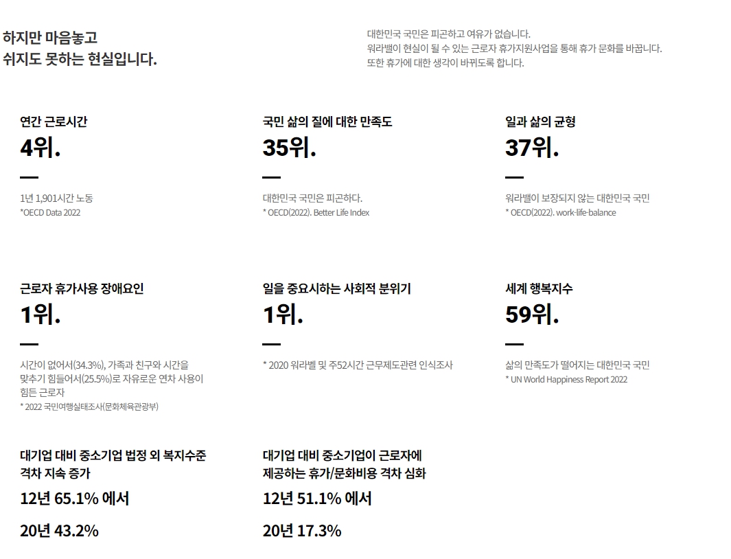 대한민국 국민들은 피로에 지쳐있고 여유가 없는게 현실인 2024년입니다. 마음 편히 쉴 수 없는 현실에 우리가 쉽게 말하는 '워라밸'은 다른 세상의 이야기처럼 들리기만 합니다. 대한민국 정부가 우리나라 근로자들의 워라밸 실현을 위해 <2024 근로자 휴가비 지원사업>을 시행한다고 하는 정보입니다.