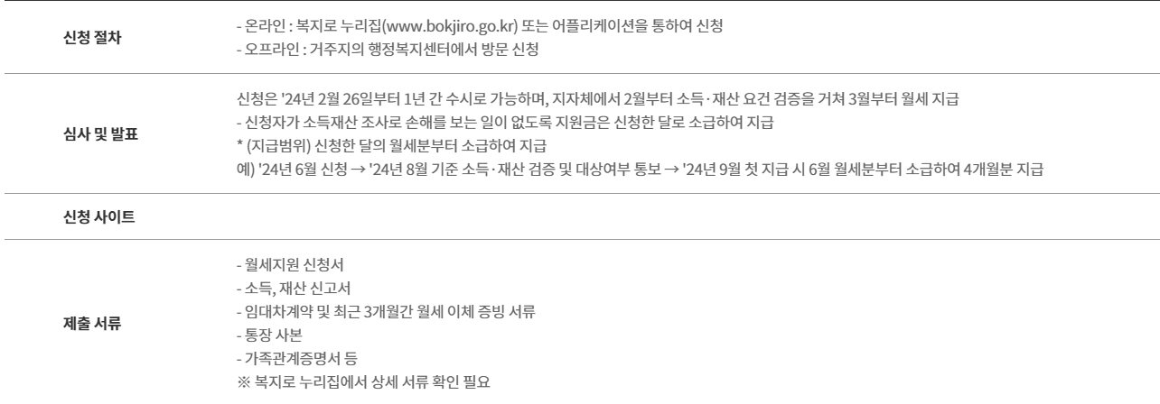 • 국토부 or 지자체 시행 월세지원 수혜 중인 경우(수혜 종료 후 신청 가능)