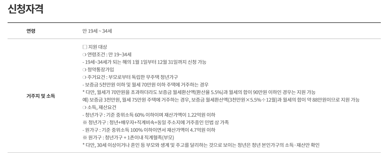 청년월세 특별지원 신청 가능 소득 및 재산 조건