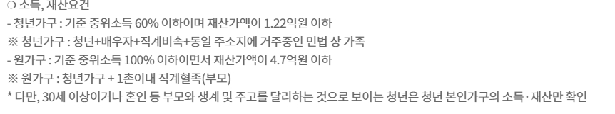 청년가구 : 기준 중위소득 60% 이하, 재산 가액 1.22억 원 이하