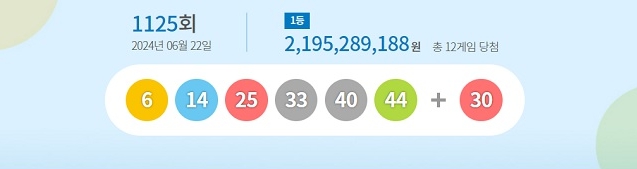 2024년 6월 22일에 추첨한 로또 1125회 당첨번호 안내 및 당첨 지역에 대해서 안내해드리도록 하겠습니다